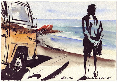 Com um estilo muito próprio, Adão e Silva e João Catarino, ilustrador deste guia ("Tanto Mar", Clube de Autor), meteram-se à estrada e retrataram, literalmente, e 'in loco', as praias portuguesas. Foram necessárias algumas semanas, alguma dose de gosto pelo nomadismo e sobretudo uma enorme paixão pelo surf.